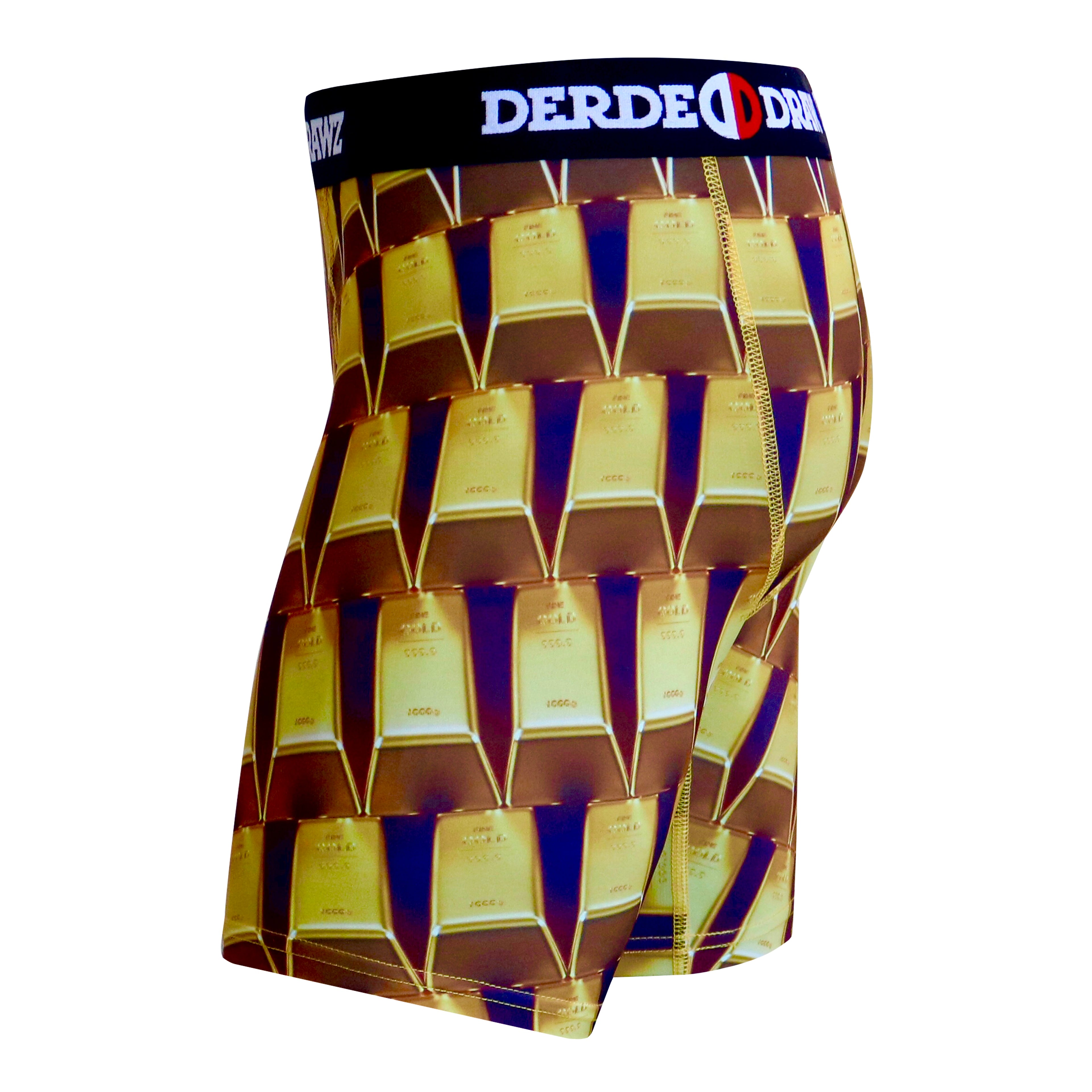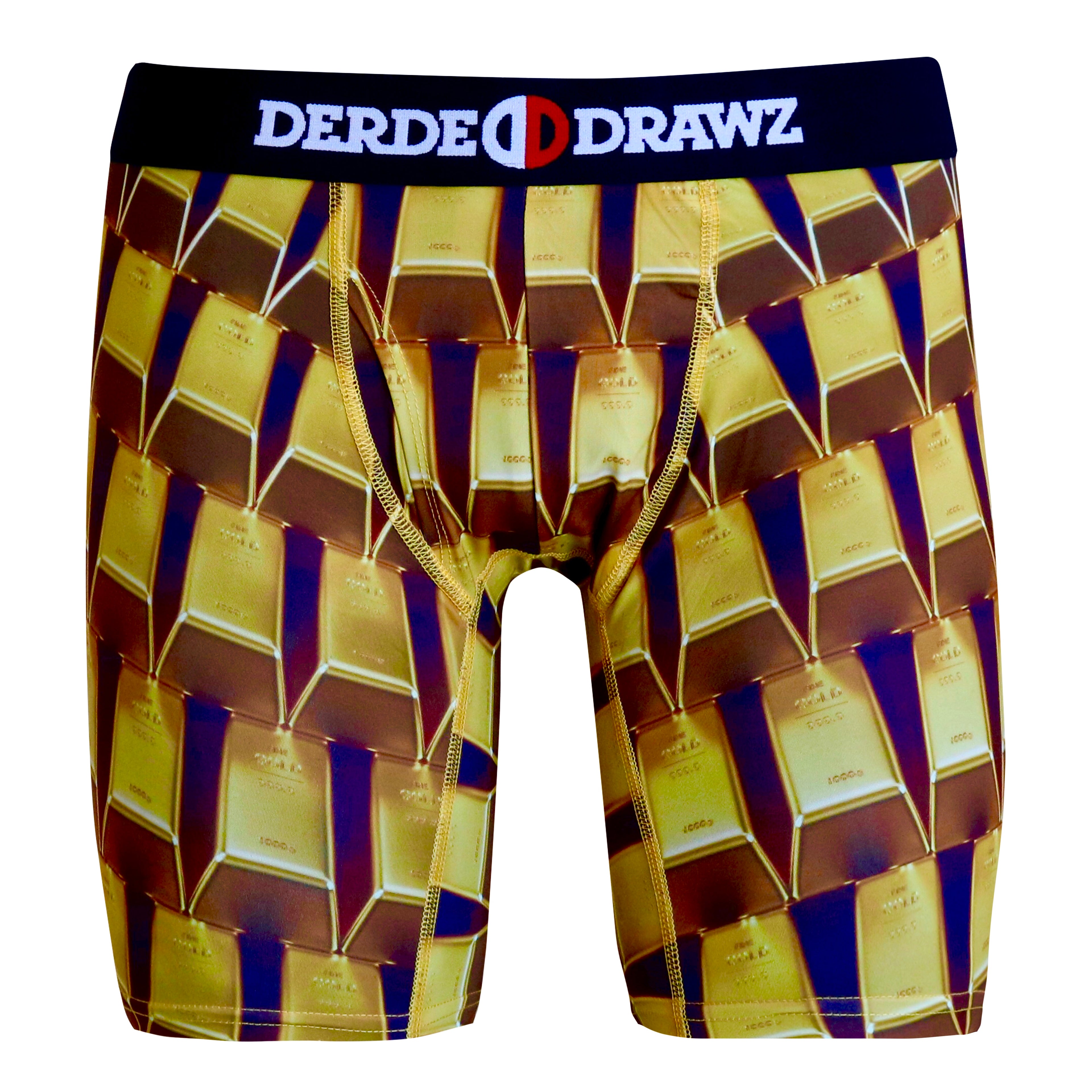 Our “Bars” print is a shoutout to the world’s most original form of currency. Gold is a precious metal that is as versatile as our underwear. It is used for everything from currency and jewelry to medicinal and dental purposes. Metallic gold is even used in food and cocktails as a decorative ingredient. Be sure to let them know that you’re living your life like its golden with the Derde Drawz “Bars” print.